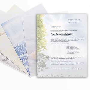 Karten mit Texteindruck und/oder Foto bestellen: - Trauerkarten, Leidzirkulare, Trauerbriefpapiere - Danksagungskarten, Gedenkkarten - Einladungskarten, Couverts -> Karten inkl. Eindruck bestellen |